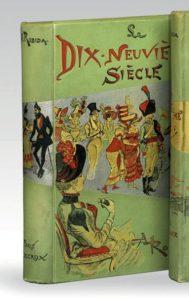 ROBIDA (Albert). Le XIXe siècle. Paris, Georges Decaux, 1888. In-4, toile vert olive, grande composition polychrome sur les plats et passant sur le dos, titre sur le premier plat, tranches dorées (Reliure de l'éditeur).
