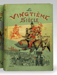 Le Vingtième Siècle est l'un des trois grands ouvrages d'anticipation de Robida, dans lequel l'artiste doit transporter le lecteur en 1952 dans un Paris à 64 arrondissements, où tout le monde court partout et pour tout, [...] où les gens ne communiquent plus que par téléphonographe ou téléphonoscope, où l'on ne se déplace plus qu'en aérocab ou en aéronef, toujours à la merci d'attaques aériennes (cf. Brun, p. 26).