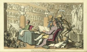 Spirituelle illustration de Thomas Rowlandson, comprenant au total 100 aquatintes en couleurs, soit : 74 planches, dont un titre gravé et un frontispice, pour The Dance of Death, et 26 planches, dont un titre gravé et un frontispice, pour The Dance of Life.