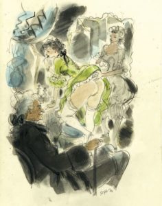 Un des 7 exemplaires sur japon nacré, comprenant un dessin original, une suite avec remarques sur japon impérial et une suite en bistre avec remarques sur papier Johannot.