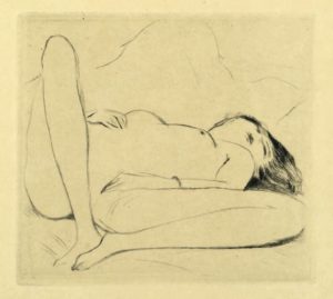 Exemplaire sur japon comportant 4 gravures libres non signées et 2 dessins originaux très libres à l'aquarelle.