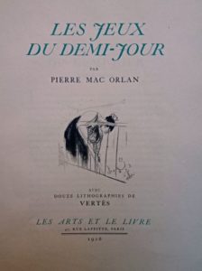 MAC ORLAN (Pierre). Les Jeux du demi-jour. Paris, Les Arts et le Livre, 1926. In-folio, en feuilles, couverture illustrée, chemise, étui.