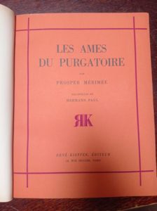 MÉRIMÉE (Prosper). Les Âmes du Purgatoire. Paris, René Kieffer, [1929]. In-4, maroquin à long grain aubergine, grande composition à froid sur les plats et passant sur le dos, tête dorée, non rogné, couverture et dos (René Kieffer).
