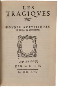 Œuvre maîtresse du poète huguenot Agrippa d'Aubigné, inspirée par les guerres de religion ; il attendra près de quarante ans avant de la publier. « Poème écrit par humeur, qui se rattache à la fois à la tragédie, à l'épopée et à la satire, il comprend sept livres (Misères, Princes, La Chambre dorée, Les Feux, Les Fers, Vengeances, Jugement) qui font découvrir au lecteur la rancœur du poète contre les responsables des troubles d'un monde renversé, ainsi que sa confiance dans les desseins de Dieu qui rendra justice aux protestants persécutés » (Jacques Bailbé, En français dans le texte, 85).