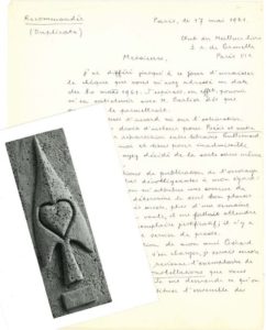 On joint également une photographie originale de l'objet en liège d'André Breton, titrée et datée de sa main au dos : « A.B. Le cœur dans la flèche 1959 » (17 x 12,5 cm).