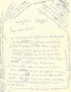 Palais-Royal 20 janvier 1956.Longue lettre sur l'Académie française et la candidature de l'historien Jacques Chastenet. De nombreux incises et commentaires sont ajoutés en marge, ou tête-bêche, tout autour de la lettre.