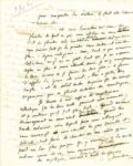 Louis BOUILHET « va se mettre sérieusement à son drame. Son intention est toujours de quitter Rouen cet hiver. Il n'en peut plus de leçons (il devient rebours et il y a de quoi) et ne veut plus en donner - Mais comment vivra-t-il là-bas ? »... Puis Flaubert commente le dernier numéro de la Revue de Paris... « Depuis que nous nous sommes quittés j'ai fait 8 pages de ma 2e partie. La description topographique d'un village. Je vais maintenant entrer dans une longue scène d'auberge qui m'inquiète fort - Que je voudrais être dans cinq ou six mois d'ici ! Je serais quitte du pire c'est-à-dire du plus vide, des places où il faut le plus frapper sur la pensée pr la faire rendre - Ta lettre de ce matin, aussi m'attriste - Pauvre chère femme, comme je t'aime - Pourquoi t'es-tu blessée d'une phrase qui était au contraire l'expression du plus solide amour qu'un être humain puisse porter à un autre ? Ô femme ! femme, sois-le donc moins, ne le sois qu'au lit. - Est-ce que que ton corps ne m'enflamme pas quand j'y suis. - Ne m'as-tu pas vu te contempler, tout béant et passer mes mains avec délices sur ta peau. - Ton image, en souvenir, m'agite. Et si je ne te rêve pas plus souvent, c'est qu'on ne rêve pas ce qu'on désire. - Hume bien l'air des bois cette semaine et regarde les feuilles pr elles-mêmes. Pour comprendre la nature, il faut être calme - comme elle.