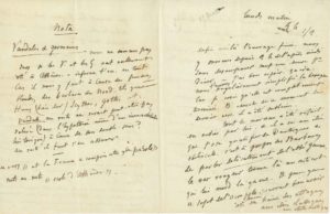 Puis Louis BOUILHET prend la plume : « Chère Muse, vous avez bien raison, nous formons à nous trois un faisceau que nul ne brisera ; je suis en retard avec vous, de deux lettres - mais je viens de vous faire plus de quarante mauvais vers - nous sommes presque quittes. Adieu - je tombe de sommeil, et vous embrasse du fond du cœur. [...] L'amour ne me martyrise pas trop, et je suis bien plus inquiet de mes Fossiles. - Je ne peux m'empêcher de constater avec quelle intensité complaisante vous parlez des Éphèbes - Ça n'est pas rassurant pour nous autres, qui commençons à perdre notre duvet »...