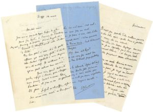FLAUBERT Gustave (1821-1880) 4 L.A.S. « G Flaubert », 1871-1879, à Jeanne de TOURBEY, comtesse de LOYNES ; 1 page et demie, 1 page (sur papier bleu), 2 et 2 pages in-8.