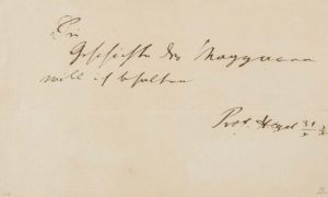 HEGEL Georg Wilhelm Friedrich (1770-1831). P.A.S. « Prof. Hegel », [Berlin] 31 mai 1828 ; 1 page oblong in-8 ; en allemand.