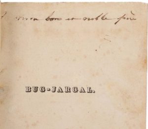 Envoi autographe signé sur le faux-titre à son père, le général Hugo : « à mon bon et noble père », signé d'un paraphe.