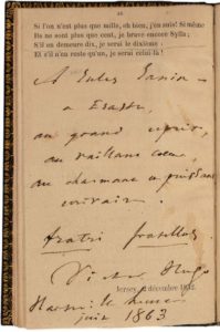 Bel envoi autographe signé à Jules JANIN, sur la dernière page : « A Jules Janin, à Eraste, au grand esprit, au vaillant cœur, au charmant et puissant écrivain. Fratri fratellus. Victor Hugo Hauteville House, juin 1863 ».