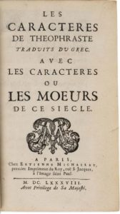 LA BRUYÈRE Jean de (1645-1696). Les Caractères de Théophraste traduits du grec. Avec Les Caractères ou les Mœurs de ce siècle (Paris, chez Estienne Michallet, 1688) ; in-12 de [30 ff], pp. 53-360-[2 ff.], reliure maroquin brun janséniste, dentelle intérieure dorée, tranches dorées (Chambolle-Duru).