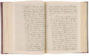 LAMARTINE Alphonse de (1790-1869). 72 L.A.S. «Alph. de Lamartine » ou « Lamartine » (dont une dizaine non signées), 1824-1847, à Louis AIMÉ-MARTIN ; 177 pages formats divers, la plupart in-4, plusieurs adresses ou enveloppes ; montées sur onglets sur des ff. de papier vélin ; le tout relié en un vol. in-4, maroquin janséniste bordeaux, doublures du même avec encadrement de filet doré, dos à 5 nerfs, gardes de soie moirée bronze, contregardes de papier marbré et doré, tranches dorées (G Cretté succ. De Marius Michel).