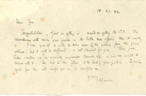 LAWRENCE Thomas Edward (1888-1935). L.A.S. « TELawrence », 18 novembre 1922, à William Ormsby GORE ; 1 page oblong in-8 (légères rousseurs), sous chemise demi-maroquin bleu ; en anglais.
