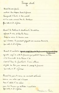 PÉRET Benjamin (1899-1959). POÈME autographe signé « Benjamin Péret », Passage clouté ; 1 page grand in-8 (21 x13,5 cm) sur papier ligné.