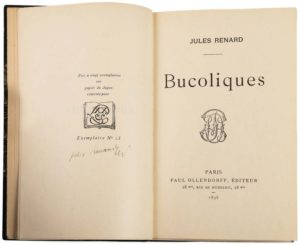RENARD Jules (1864-1910). Bucoliques (Paris, Paul Ollendorff, 1898) ; in-12, demi-maroquin vert …