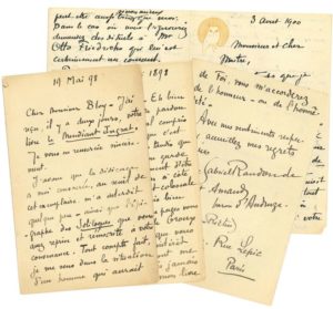 RICTUS Jehan (1867-1933). 76 L.A.S. « Gabriel Randon » et/ou « Jehan Rictus », 1898- 1904, à Léon BLOY ; environ 250 pages, la plupart in-8, 6 enveloppes (2 annotées par Bloy), adresses au dos de 17 cartes (2 télégrammes et une coupure de presse joints).