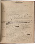 VERLAINE Paul (1844-1896). RECUEIL de 6 MANUSCRITS autographes, dont 4 signés, 1884-1891 ; 27 pages in-8 ou in-4, montés à fenêtre (sauf un) et interfoliés de papier vélin, avec les textes imprimés correspondant, le tout relié en un volume in-4, reliure anglaise postérieur, maroquin rouge, dos à nerfs, filets dorés, doublures de maroquin vert foncé avec encadrement doré à écoinçons, garde de soie moirée blanche, tête dorée (charnières frottées).