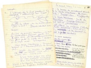 L'écriture a été précédée par un bref découpage (1 p. in-8), puis un « Plan approximatif » (4 p.), et un plan plus développé en 12 tableaux avec le dessin de « la fusée pendant le voyage et l'atterrissage sur Mars » (4 p.).