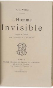 WELLS H. G. (1866-1946). L'Homme invisible (Paris, Société d'éditions littéraires et …