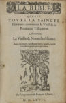 C'est la version de Genève, précédée de la préface de Jean Calvin qui s'ouvre sur : « Si je vouloye ici user de longue préface, j'auroye trois poincts à déduire. Le premier seroit de monstrer quel thrésor c'est de l'Escriture saincte ».
