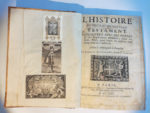 [BIBLE ILLUSTRÉE. Français. 1713]. — HISTOIRE (L') du Vieux et du Nouveau Testament, représentée avec des figures & des explications édifiantes — À Paris, chez P. Le Petit, 1671. — In-4, [8] f. 552 p., demi-veau fauve à petits coins XIXe...