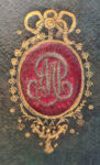 Paris, chez les frères Estienne, 1747. — In-8, maroquin vert, dos lisse à décor de roulettes horizontales sur pièces mosaïquées rouges, pièces de titre assortie, fleurons dorés, riche décor aux petits fers aux plats, avec double filet et roulette en bordure, le toute doré, avec aux centres de chacun un médaillon de maroquin rouge, portant en broderie de fils d'argent au plat supérieur un monogramme, au plat inf. un bouquet, roulette dorée aux coupes, double roulette intérieure dont une grecque, garde de soie rose, tranches dorées [Devers] (menus défauts dont coins un peu frottés, petit mq. à une mosaïque au dos, trav. de vers au contreplat sup. ; brunissures).