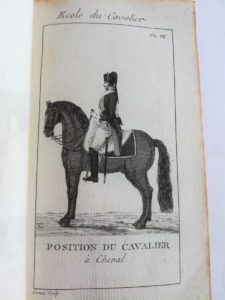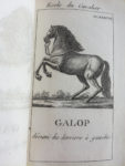 Album (seul, sans le volume de texte) comprenant 155 planches gravées sur cuivre, la plupart dépliantes (num. I-CLII et 3 bis), montrant la tenue du cavalier, les mouvements du cheval, l'harnachement, et un grand nombre de figures de manoeuvres.