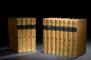 pièce de titre noire, tomaison mosaïquée grenat, double-roulette dorée bordant les plats, dont une florale, roulette dorée aux coupes et chasses, tranches dorées [Bozérian] (petits trav. de vers sur 4 mors, sans gravité - t.1, 2 et 5 - , 2 coins émoussés au t.9, qq. légers frottements et griff. superf. ; rouss. et bruniss. ordinaire de l'édition ; collation détaillée sur demande).
