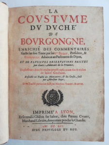 [Coutume. Bourgogne. 1652]. — COUSTUME (La) du duché de Bourgongne, enrichie des commentaires faicts sur son texte par les sr Begat,... et Depringle... — Ensemble un traicté des main-mortes et des censes fait par Monsieur Begat, et un traicté...