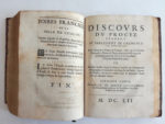 La seconde partie renferme : Discours du procez pendant au Parlement de Grenoble, précédé d'une page de titre particulière, et concerne le droit coutumier de Bourgogne à propos des successions.