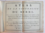 [Berry]. — DUPAIN-TRIEL (Jean-Louis). — Atlas de la generalite du Berri, consideree sous les differents rapports de sa division en sept elections et en vingt-quatre arrondissements ; des chemins qui y existent et doivent y etre ouverts et des...