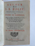ÉRASME. — L'éloge de la folie, composé en forme de déclamation. — Avec quelques notes de Listrius, & les belles figures de Holbenius traduite nouvellement en françois. — A Leyde, chez P. Van Der Aa, 1713. — In-12, [16] f., 312 p., fr.,...