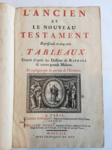 [MARNE (Louis-Antoine de)]. — L'Ancien et le Nouveau Testament représentés en cinq cens tableaux gravés d'après les desseins de Raphaël & autres grands maîtres. — À Paris, chez Claude Hérissant et Guillaume Desprez, 1759. — In-folio,...