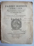 [Livre du XVIe siècle]. — MASSON (Jean-Papire). — Libri sex De episcopis Urbis, qui Romanam Ecclesiam rexerunt, rebusque gestis eorum... — Parisiis, apud S. Nivellium, 1586. — In-4, velin ivoire à recouvrements dos lisse, titre à l'encre,...
