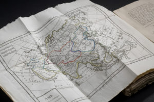 Exemplaire tel que paru de ce traité illustré de 10 cartes hors-texte dépliantes, gravées sur cuivre, aux limites coloriées, et d'un tableau chronologique des rois de France également hors-texte dépliant.