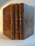 nerfs, pièce de titre rouge, tomaison dorée, caissons ornés, tranches rouges (défauts dont fentes aux mors, coins usés, coiffes découvertes ; mouillure soutenue en tête de la 2e moitié du t.3, avec qq. atteinte au papier, en marge du texte mais touchant qq. pl., et plus légère, en pied au début du t.1, sauf pour la 1ère pl. usée en pied).
