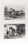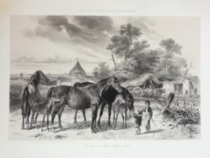 Première édition de ce superbe document, abondamment illustré par les grandes planches d'Hippolyte Lalaisse offrant des scènes à sujets hippique, militaire ou agricole mettant en scène les différentes races de chevaux répertoriées en France à cette époque.