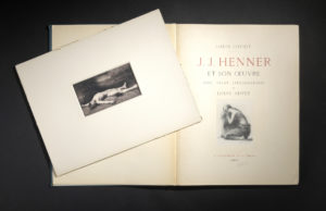 [Henner]. - LOVIOT (Louis). — J. J. Henner et son œuvre. — Avec vingt lithographies de Louis Huvey. — Paris, Engelmann, [1912]. — In-folio, 56 p., [1] f., pl., cartonnage éditeur, étui (couv. détachées, dos manquant, étui incomplet...
