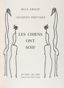 ERNST. – PRÉVERT (Jacques). — Les chiens ont soif. — Paris, Au Pont des Arts, 1964. — In-folio, reliure parchemin ivoire, dos lisse et muet, étui assorti.