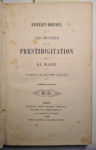 ROBERT-HOUDIN (Jean-Eugène). — Les secrets de la prestidigitation et de la magie. — Comment on devient sorcier. — Paris, Michel Lévy frères, 1868. — In-8, [1] f. (titre), II p., [1] f., 442-X p., 67 fig., demi-basane brune époque, dos à...