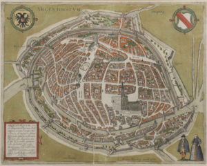 [Strasbourg]. — [BRAUN (Georg)] ; – HOGENBERG (Abraham). — Argentoratum. Strassburg. — Cologne, Hogenberg, [entre 1575 et 1645]. — Plan gravé sur cuivre, colorié, env. 34 x 42 cm., extrait d'un atlas. — Sous verre et cadre moderne (non...