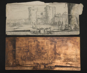 Gravés à l'eau-forte, avec les tirages sur papier (usagés, accidentés). 11x26 cm. (sujets répertoriés dans le catalogue De Vesme 264,265,266,267,763).