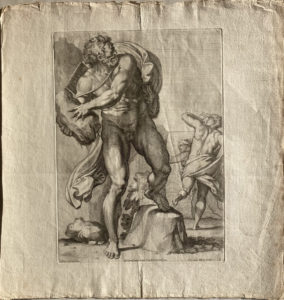 Apollon et Marsyas, Borée et Orithye ; Eros et Léandre, Pan et Syrinx ; Hermaphrodite et Salmacis , Omnia vincit Amor ; trois atlantes. — Neuf gravures sur cuivre sur papier vergé filigrané du XVIIIe siècle. — (Rousseurs, pliures, mouillures, déchirures et bords fatigués). — 44,5 x 60 cm