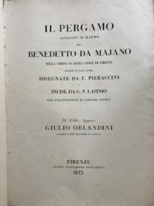IL PERGAMO SCOLPITO IN MARMO DA BENEDETTO DA MAJANO nella chiesa di Santa Croce du Firenze. Firenze, Chez Alessandro Bernardini, 1823. Un volume in-folio broché comprenant huit planches d'après Benedetto DA MAIANO, dessiné par Francesco PIERACCINI...