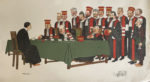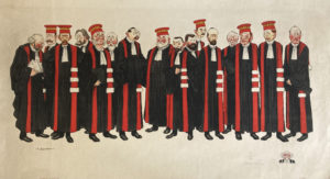 D'après Adrien BARRERE (1877-1931), imprimé chez Ch. Wall & Cie, 14, rue Lafayette Paris. — Les magistrats. — Deux lithographies en couleurs, signées dans la planche, une sur papier chine (avant la coupe) et justifié 37/60, l'autre sur petit...