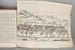 [COLLIGNON]. JOURNAL DE CE QUI S'EST FAIT POUR LA RECEPTION DU ROY DANS SA VILLE DE METZ, le 4 aoust 1744. Avec un recueil de plusieurs pièces sur le même sujet, & sur les accidents survenus pendant son séjour. A METZ, DE L'IMPRIMERIE DE LA VEUVE DE PIERRE COLLIGNON, 1744. Un volume, in-4, de 83 pp., pleine reliure de l'époque en veau brun (un peu usée, coiffes, coins). Dos à 6 nerfs cloisonné, fleuronné et doré. Quelques gravures avec de petites coupures, la dernière restaurée au. dos, un feuillet manquant p. 49-50. Illustré de huit grandes planches dépliantes signées Mangin.