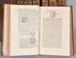 Notre exemplaire s'orne d'une très belle gravure frontispice de style allégorisant, par Cochin et de vignettes placées en tête des tomes II à IX, gravées par Simonneau, Baquay, H. S. Thomassin, Beaumont et Cochin. Il s'agrémente également de nombreux blasons in-texte, bandeaux d'ornement, lettrines et culs-de-lampe.
