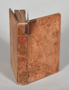 STAVORINUS Jan Splinter. VOYAGE PAR LE CAP DE BONNE - ESPÉRANCE A BATAVIA, A BANTAM ET AU BENGALE, EN 1768, 69, 70 ET 71, PAR J. S. STAVORINUS ; chef d'escadre de la République Batave ; avec des observations sur la navigation et le commerce de ces contrés, ainsi que sur le caractère, les moeurs et la religion des peuples qui les habitent. Traduit du Hollandois. PARIS, JANSEN, 1798. Un volume, in-8, de VIII pp., 434 pp., (1) f., pleine reliure de l'époque en basane granitée. Dos lisse orné et doré portant une pièce de titre en basane rouge, pièce de tomaison en basane rouge indiquant l'appartenance à une série. Roulette dorée autour des plats et sur les coupes. Reliure usagée avec des usures aux coiffes, la peau des mors fendue, une tache sombre près de la coiffe supérieure, coins émoussés. Inscription manuscrite sur la page de faux - titre : "Bibliothèque de la Malmaison". Orné de trois cartes dépliantes réunies en fin de volume.